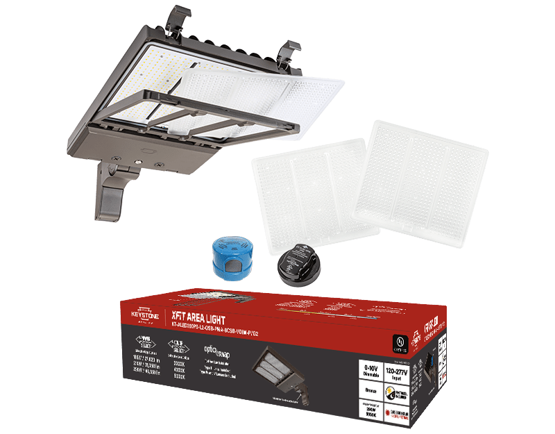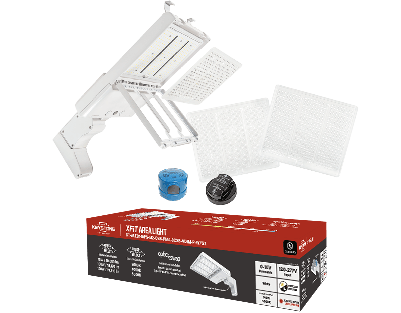 Our XFit Area Lights provide more than high-performance illumination. With OpticSwap — a tool-free way to switch out optic lenses that’s unique to Keystone — Power Select, Color Select, and SmartPort sensor technology, they eliminate custom orders and long wait times.