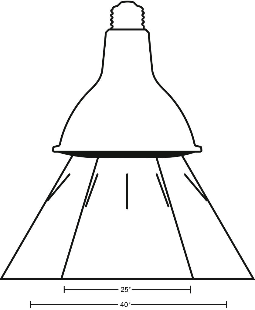 Dedicated Performance Series PAR lamps are available in both 25° narrow flood light beam angle and 40° standard flood light beam angle options. Power Select models have a 44° beam angle. A precision lens construction ensures an accurate beam angle for optimal performance.